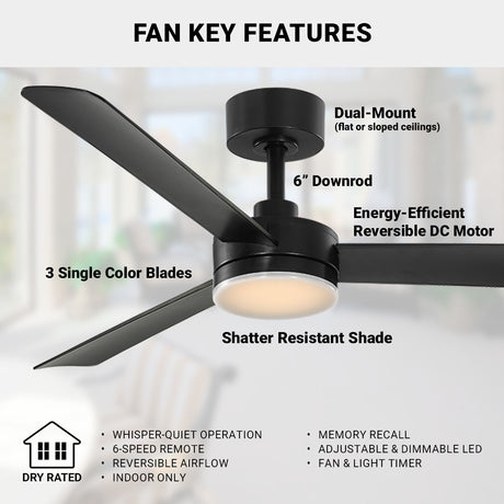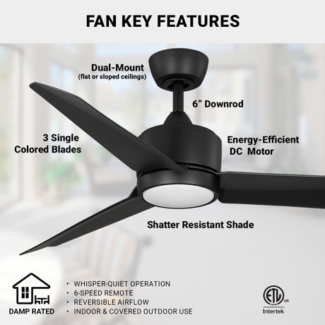52in CAPTIVA LED 3 Blade Ceiling Fan - Matte Black